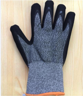 TPR impact resistant glove: EN cut5 liner in salt&pepper color,black color sandy nitrile palm coating,double dip. TPR stitched on back for impact resistance |