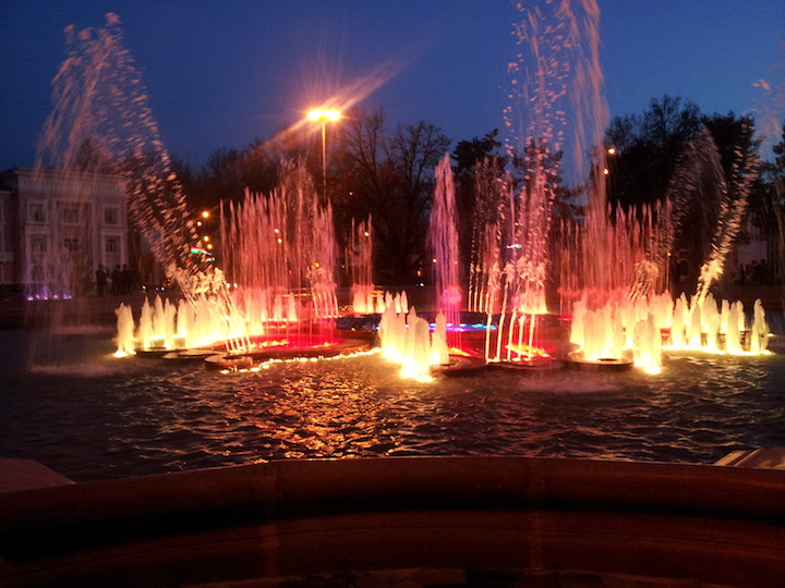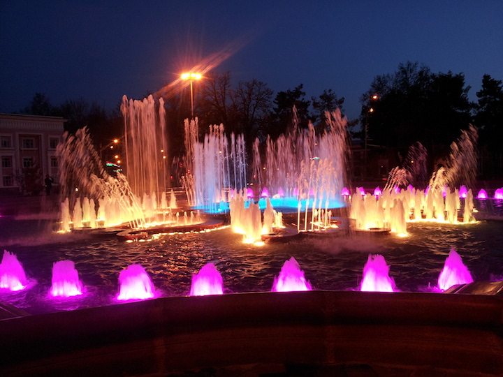 2013年塔吉克斯坦總統(tǒng)府前面廣場(chǎng)上新安裝的音樂噴泉