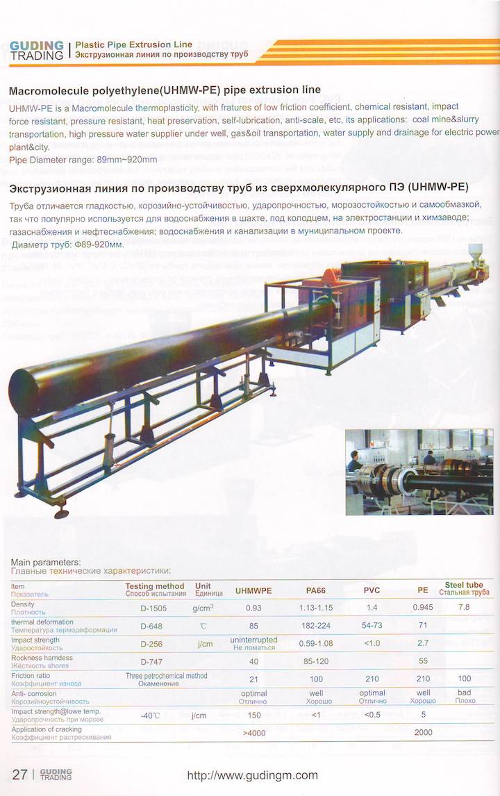 macromolecule polyethylene(UHMW-PE) pipe extrusion line