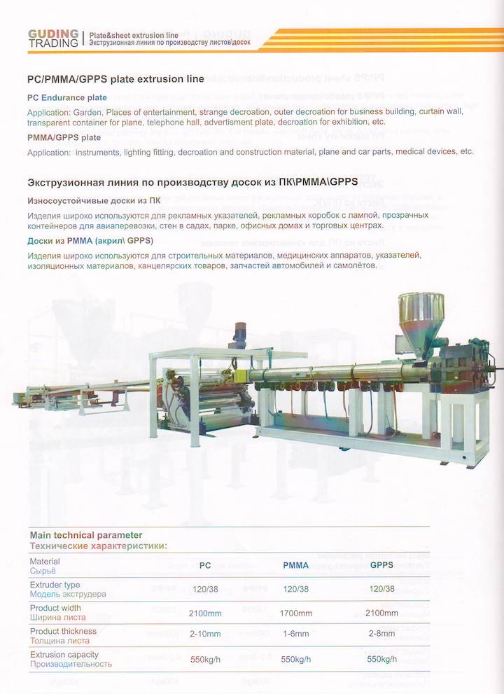 PC/PMMA/GPPS plate extrusion line
